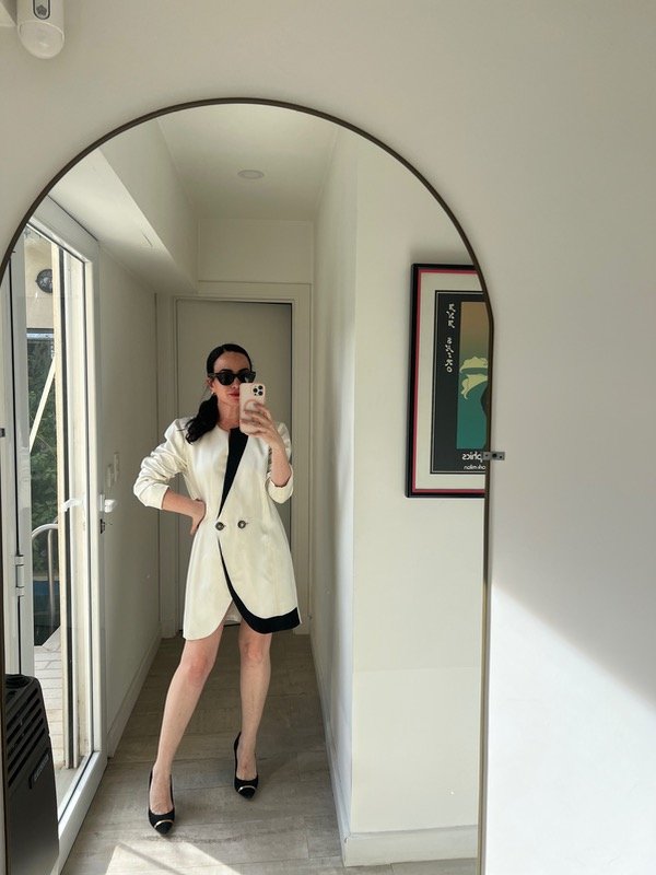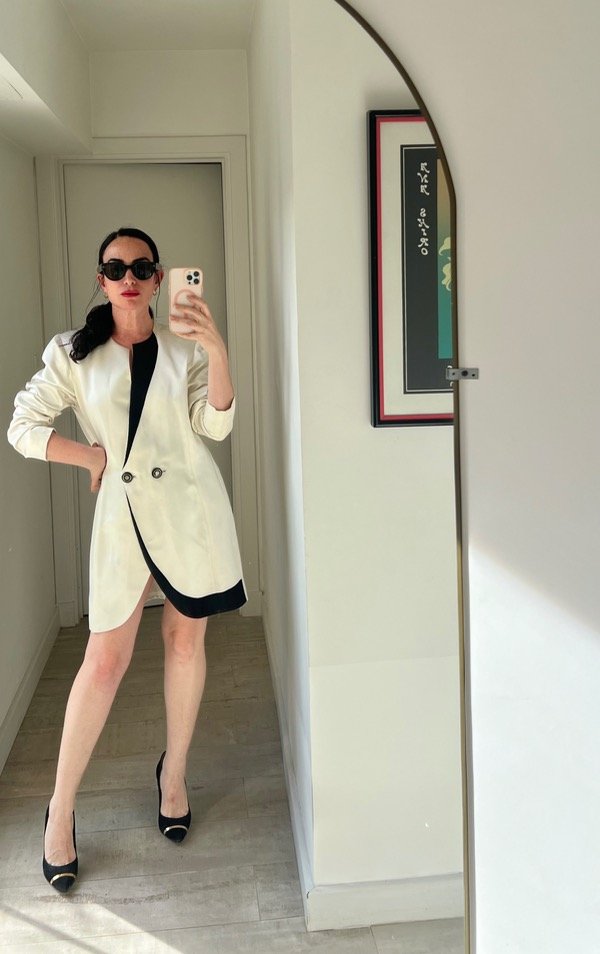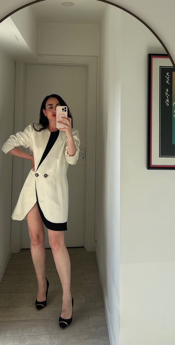 Vestido blazer (se puede usar de ambas formas) satén largo 84 hombros 45 cintura 92 sisa 28 cadera 110